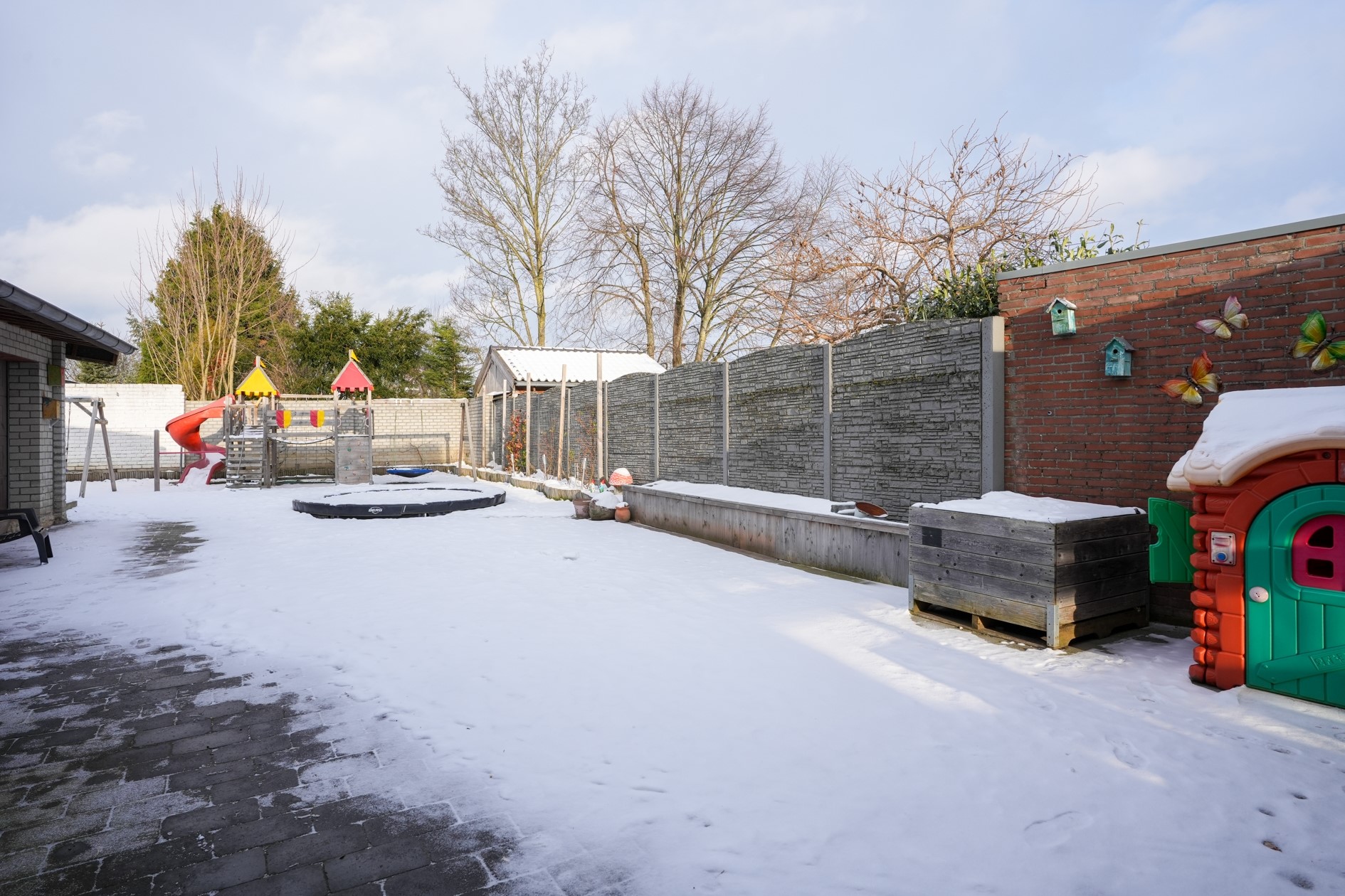 De tuin ligt aan de zij- en achterzijde en is voorzien van een prachtige houten overkapping.