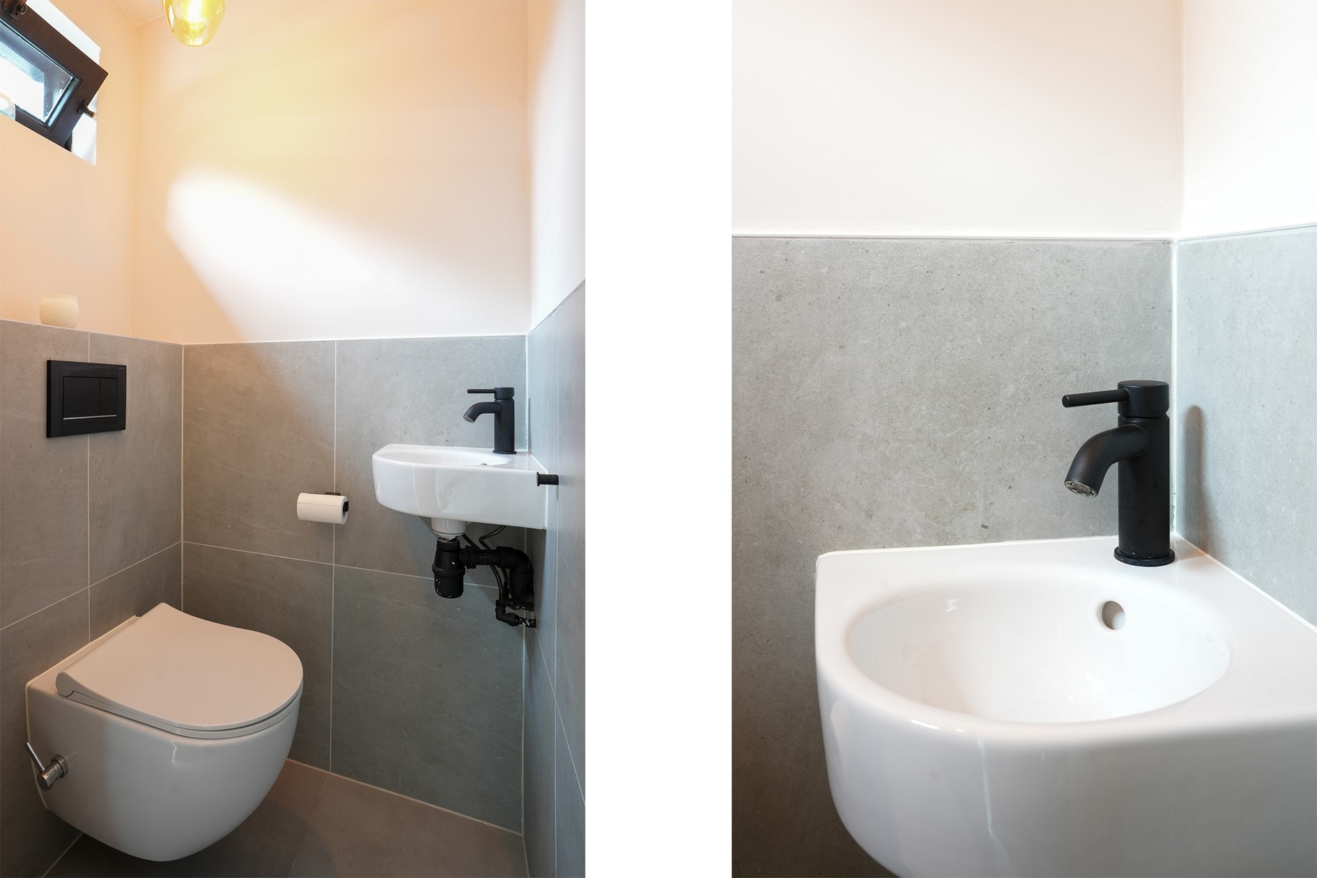 Luxe toiletruimte met zwevend toilet met fontein.