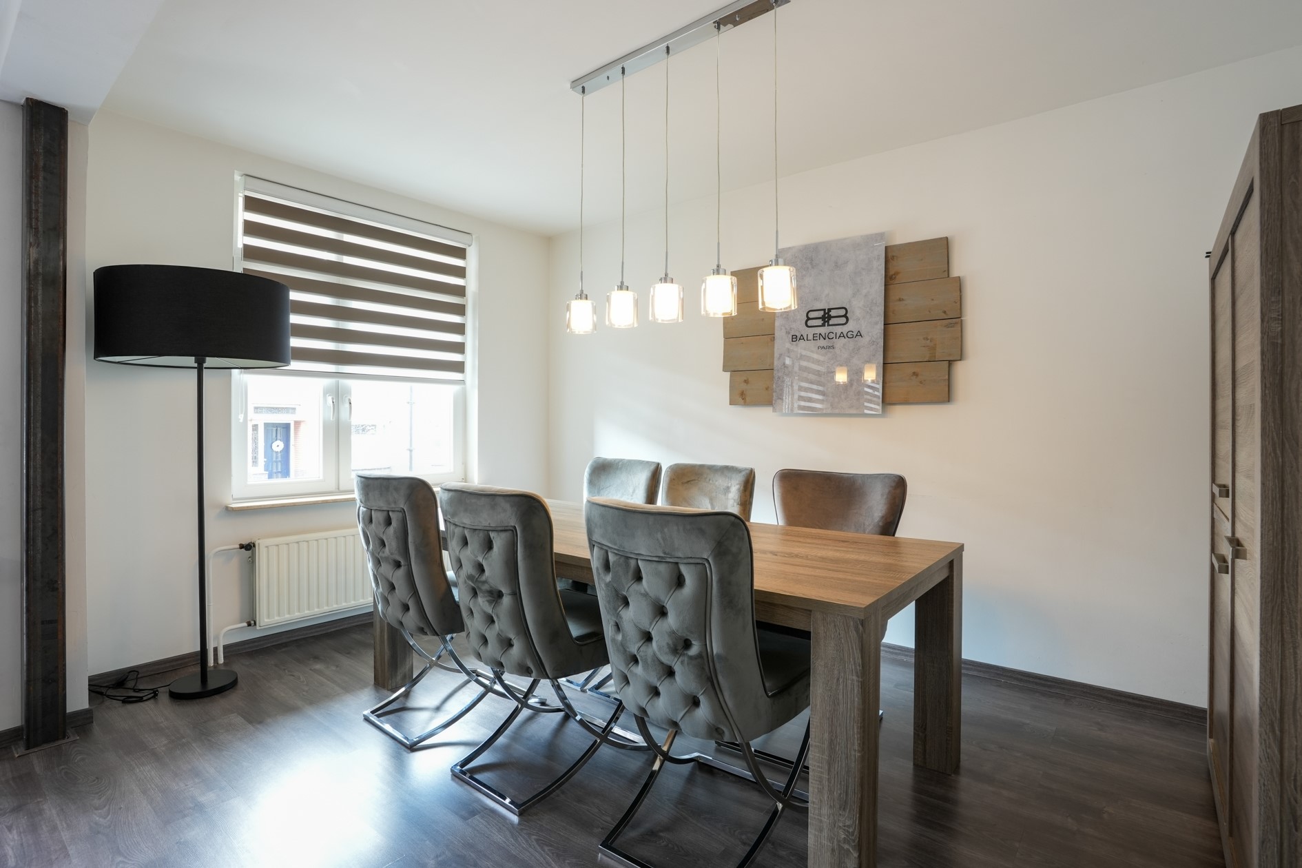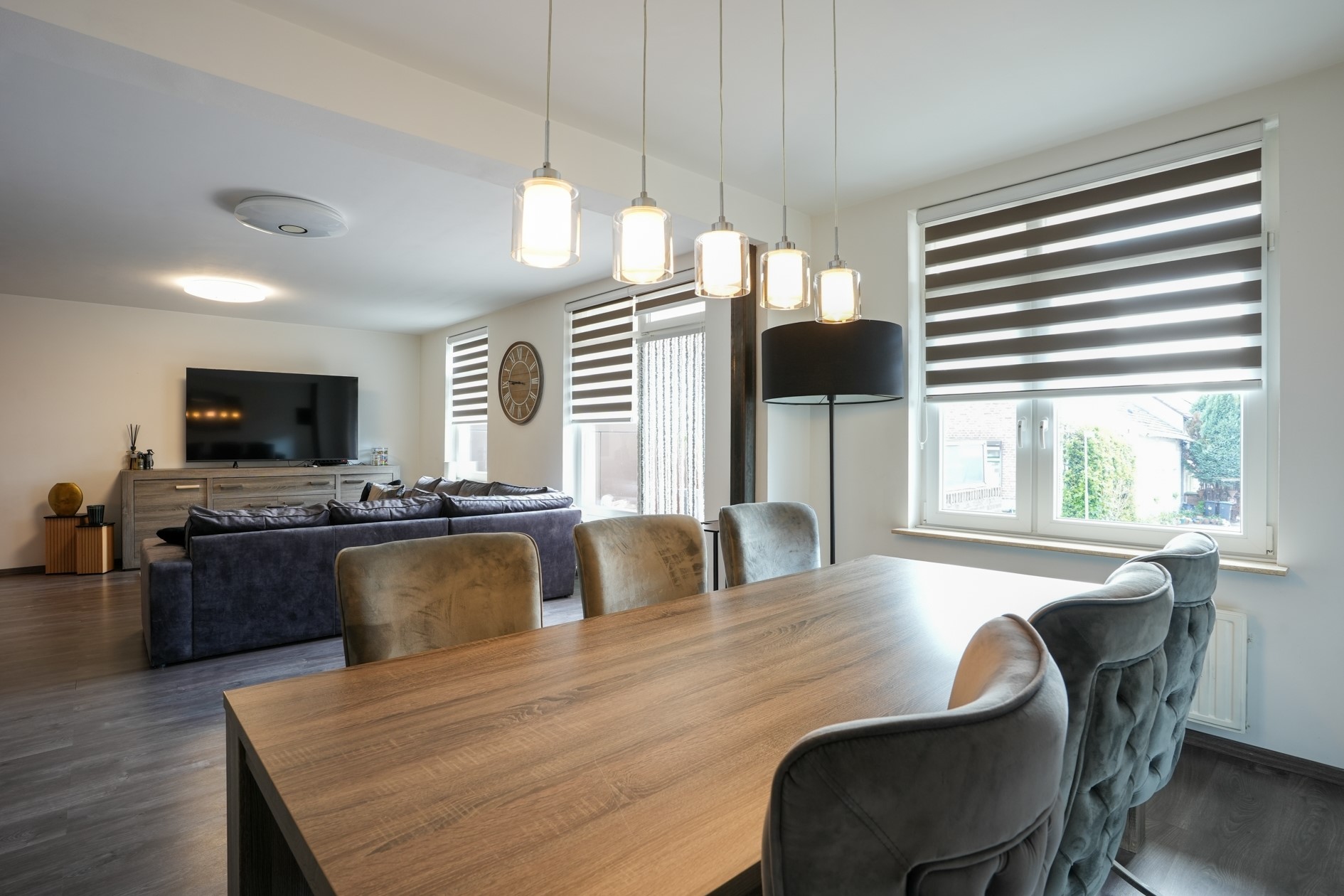 De ruime eet-/woonkamer (36 m²) in open verbinding met de moderne keuken. Vanuit hier heb je direct toegang tot het zonnige dakterras aan de voorzijde – een heerlijke plek om te ontspannen. De keuken (7,8 m²) is compleet uitgerust met diverse inbouwapparatuur, waaronder een vaatwasser, koelkast, diepvries, oven, afzuigkap en een 5-pits gasfornuis.
