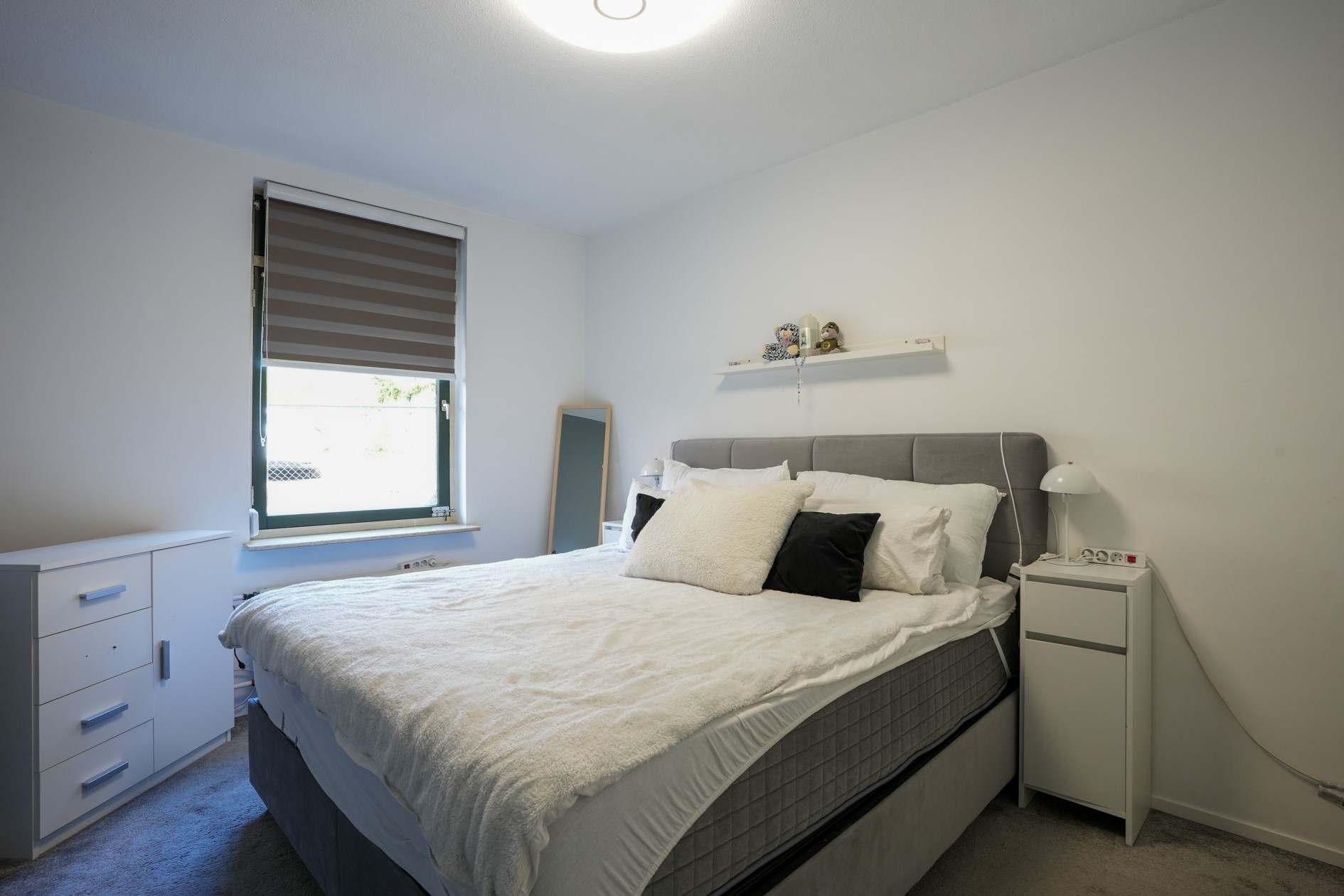 Aan de rustige achterzijde bevinden zich twee slaapkamers, beide voorzien van rolluiken. De hoofdslaapkamer (12 m²) beschikt over een inbouwkast, terwijl de tweede slaapkamer (9 m²) directe toegang biedt tot het tweede, omheinde terras.