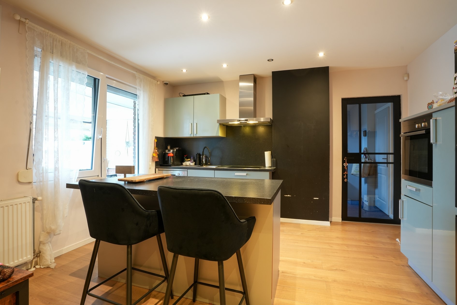 Bijkeuken met wasmachineaansluiting. Via de keuken gelangt men op het overdekte dakterras en in de tuin.
