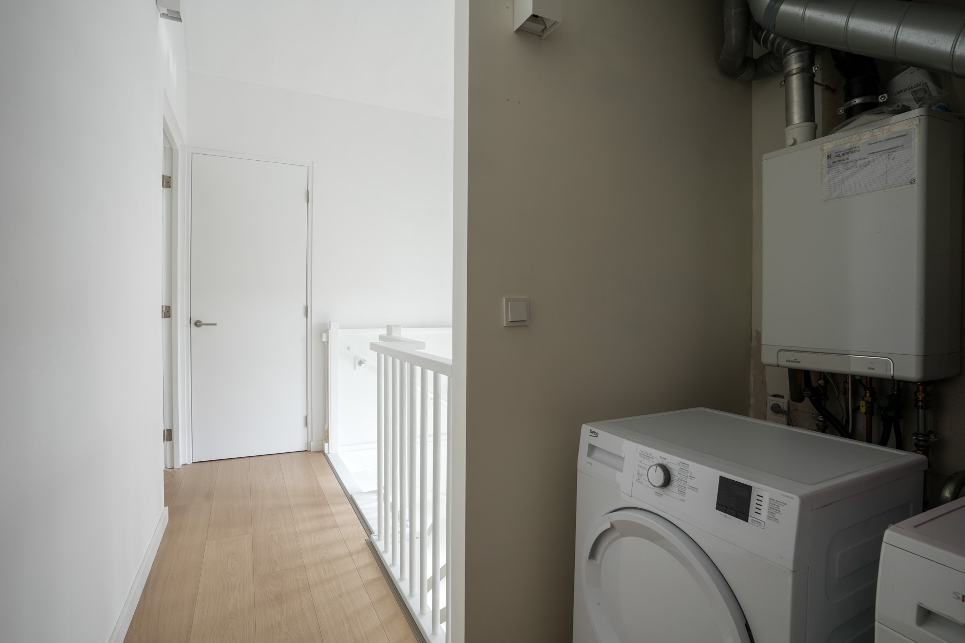Op de ruime overloop vind je de aansluitingen voor witgoed, de HR-combiketel (Intergas, 2019) en de WTW-installatie.