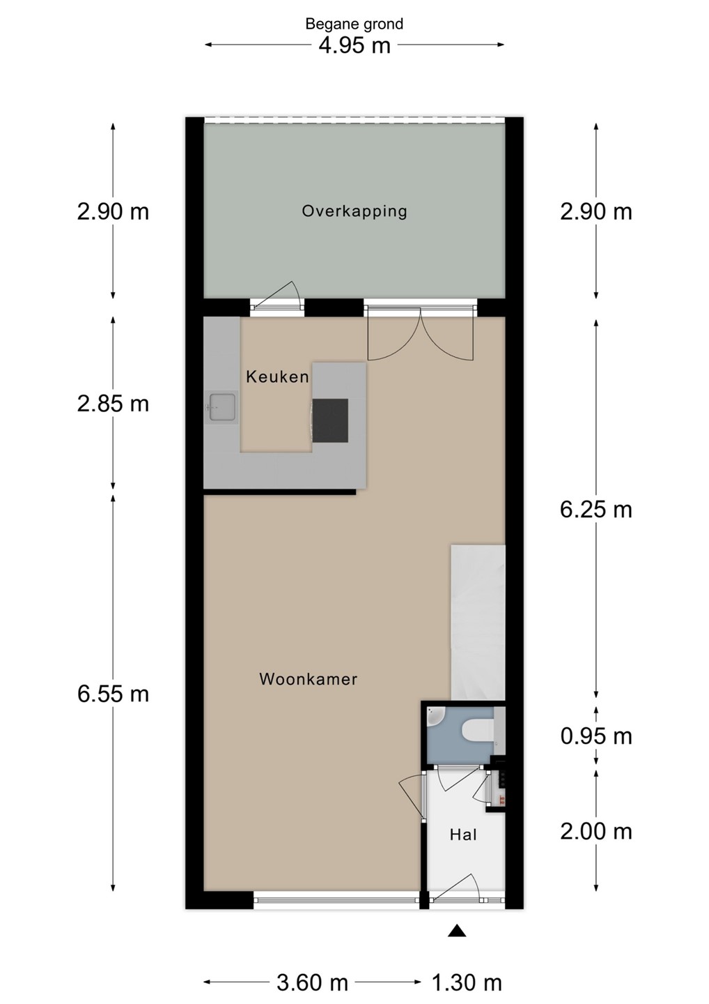 Via de entree/hal met meterkast is er toegang tot de woonkamer en het toilet.