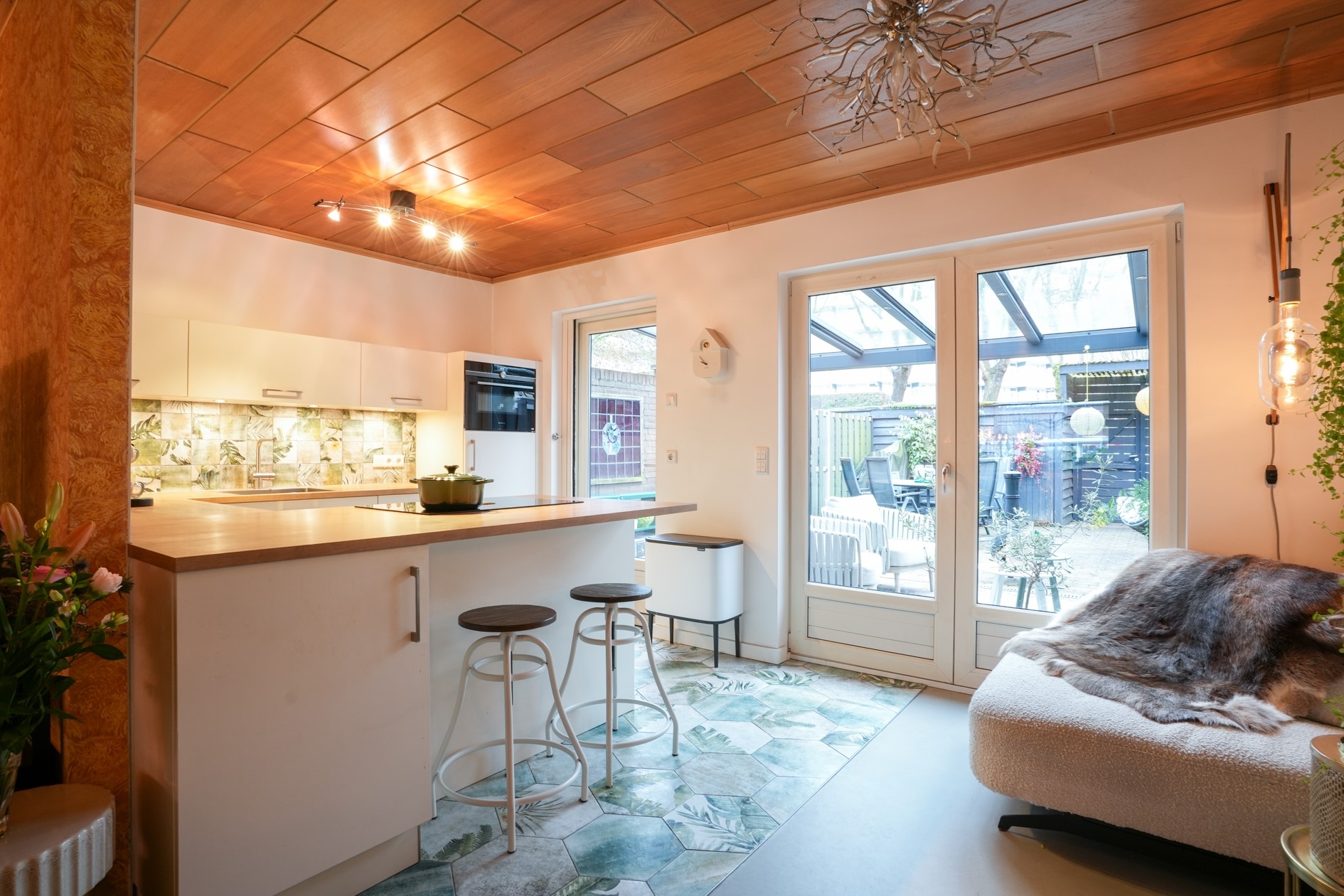 De luxe leefkeuken is geplaatst in 2021, uitgevoerd en voorzien van hoogwaardige inbouwapparatuur, waaronder een vaatwasser, koelkast combi-oven en een inductiekookplaat met geïntegreerde afzuiging.