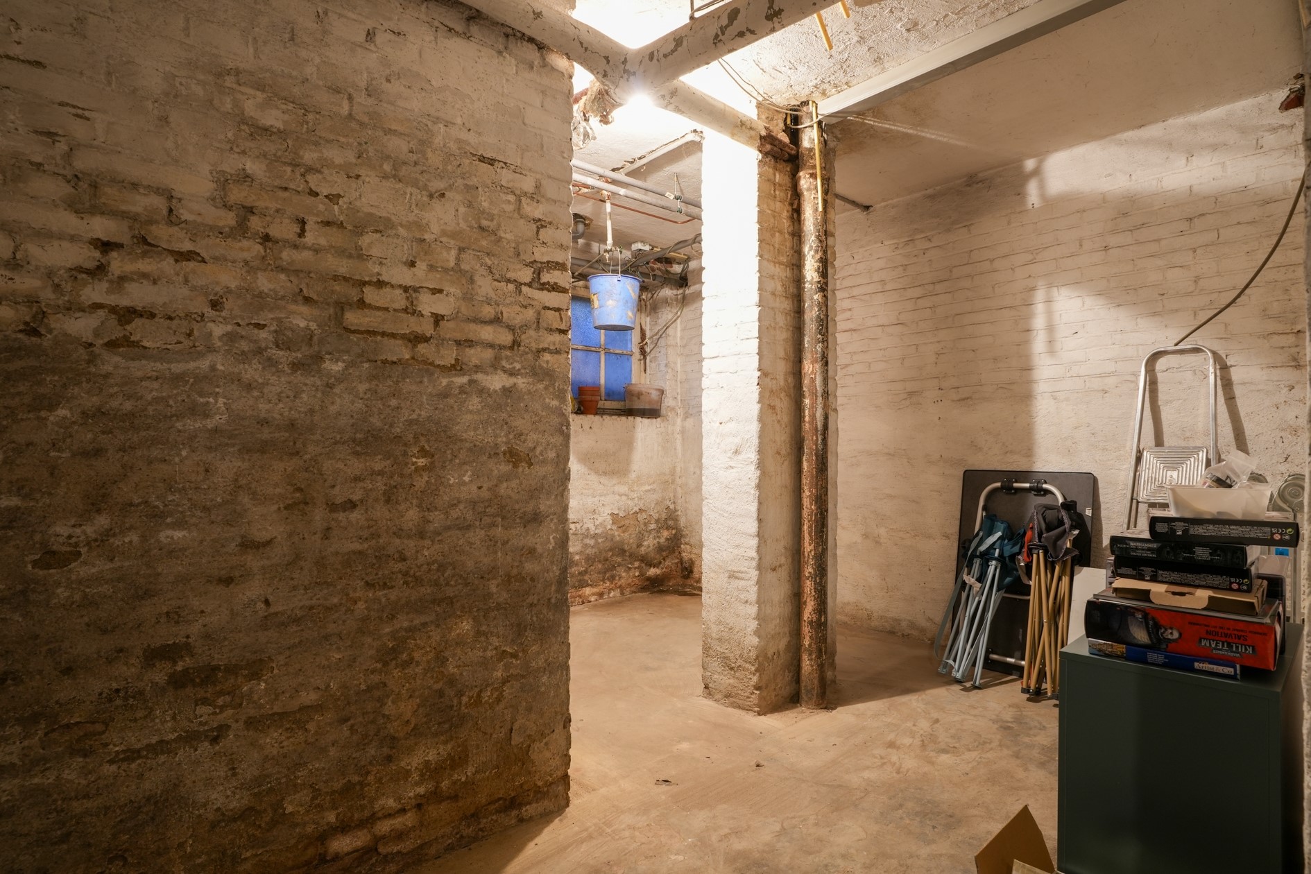 De woning is volledig onderkelderd. Het souterrain is verdeeld in vier afzonderlijke ruimtes met een totale oppervlakte van circa 75 m², inclusief de inpandige garage.