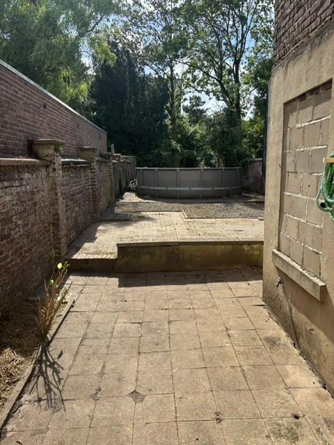 De achtertuin verkeert in een redelijke staat maar vereist wat onderhoud.