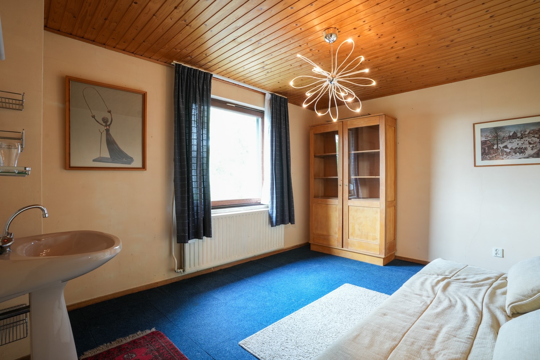Slaapkamer I (13 m²) voorzien van wastafel, gelegen aan de voorzijde van de woning.