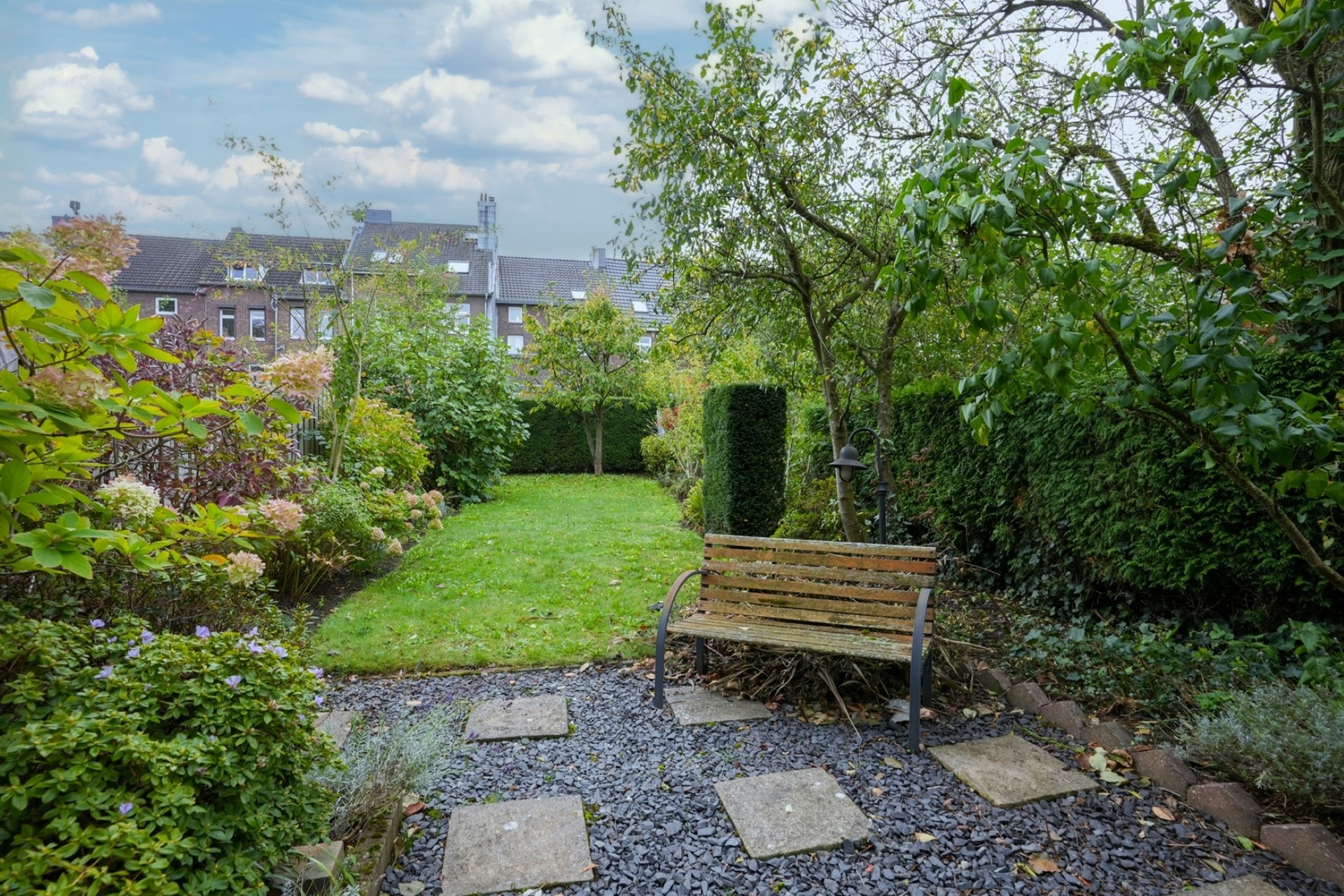 De woning beschikt over een fraaie, zonnige achtertuin.