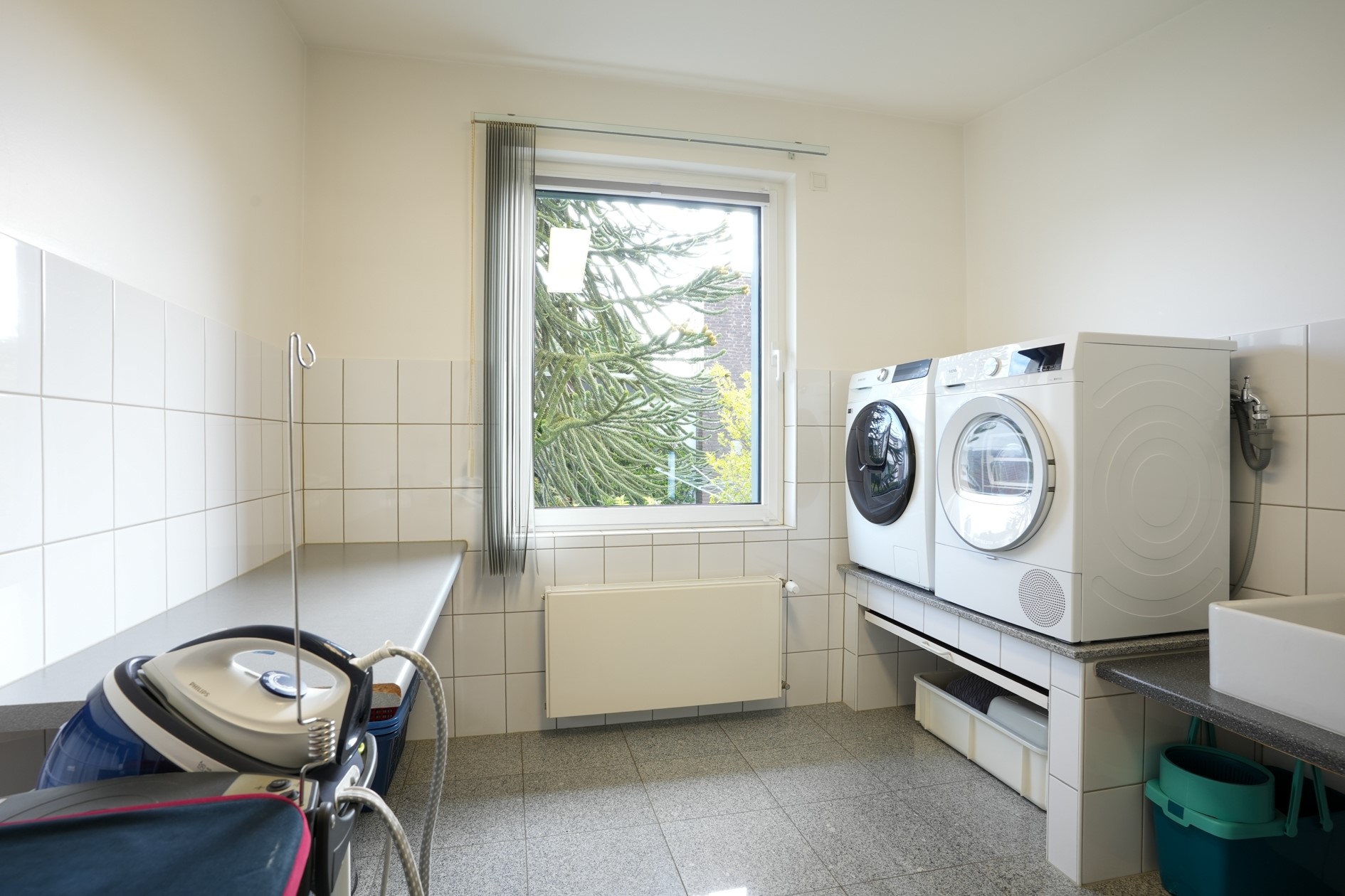 In de technische ruimte is de moderne warmtepompinstallatie geplaatst (LG 2025, eigendom), inclusief een royale boiler van 200ltr, waarmee de woning volledig gasloos functioneert.