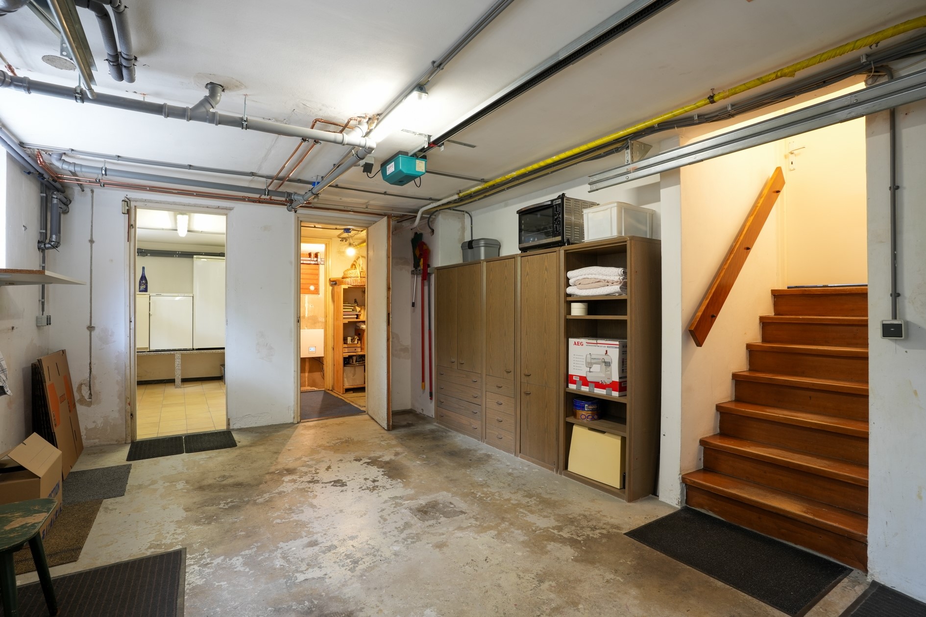 Op straatniveau bevindt zich een inpandige, verwarmde garage (20 m²) met elektrische sectionaalpoort en oprit.
