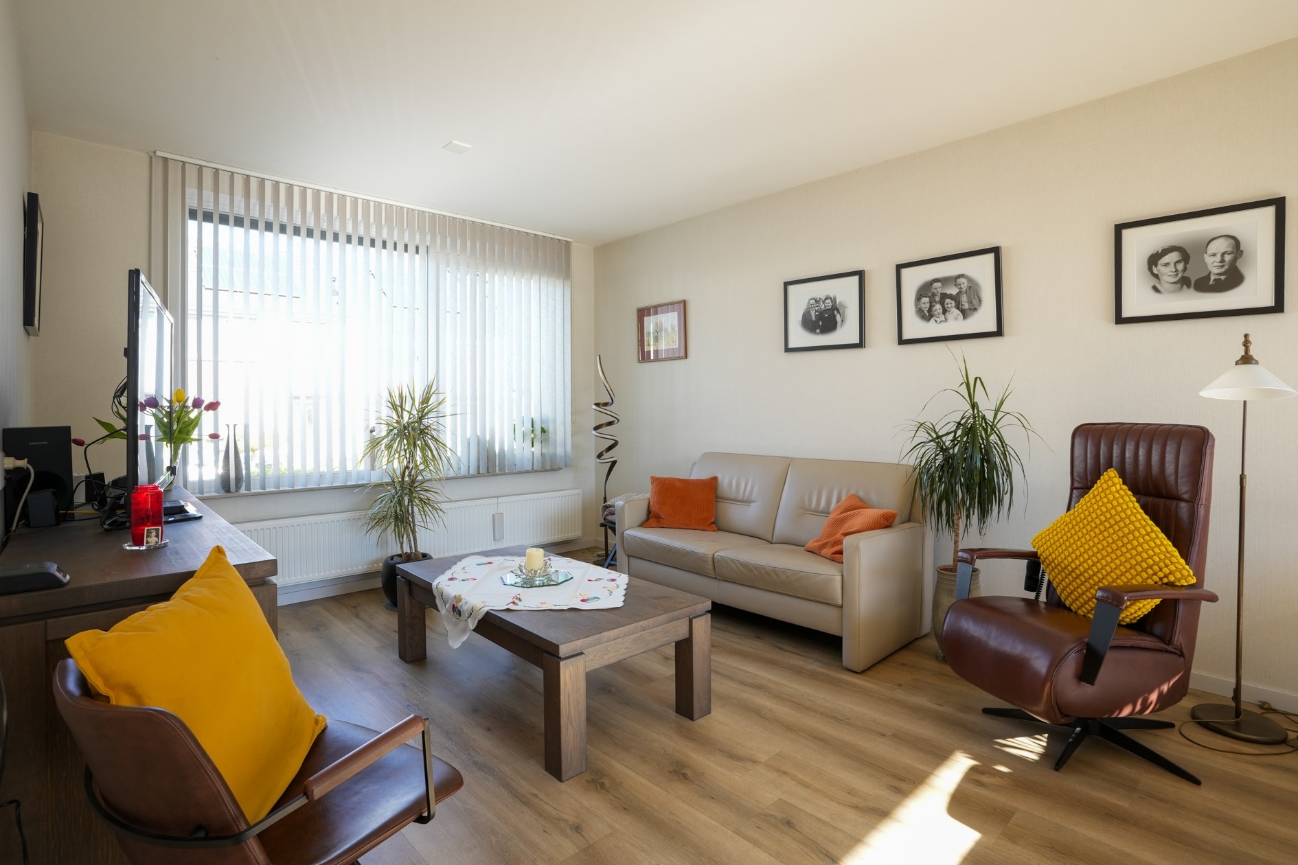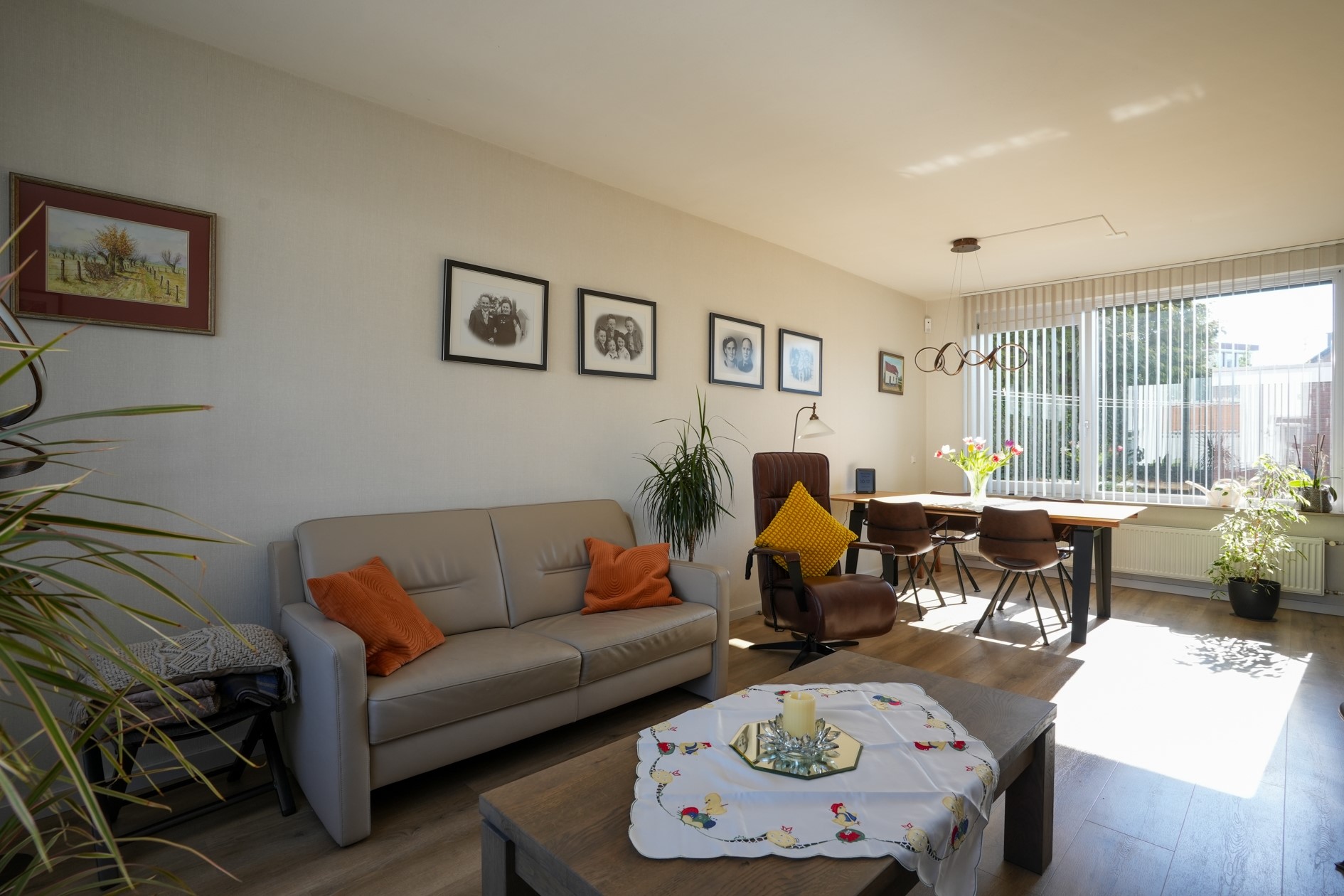 De fijne, lichte woon-/eetkamer (25,5 m²) biedt een prettige leefruimte. De begane grond is voorzien van een moderne pvc-vloer.